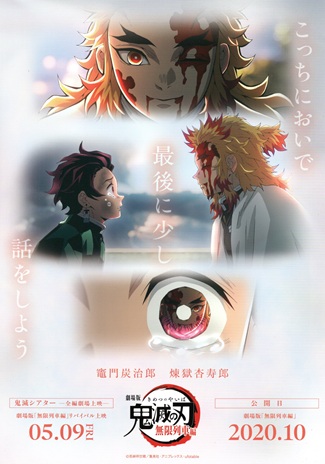 こちらのチラシは全国劇場上映された「鬼滅シアター」で販売されたグッズなので、配布チラシではありません。 A4サイズのチラシ&クリアファイル(同柄)封入で税込み1枚800円。 全部で64種あります。 ランダムなので何が入っているのか、わかりません。 全て左側に鬼滅シアター劇場公開日と、右側に初公開の年度(またはTV初放映年度)が入っています。 裏は名場面のカットになってます。
